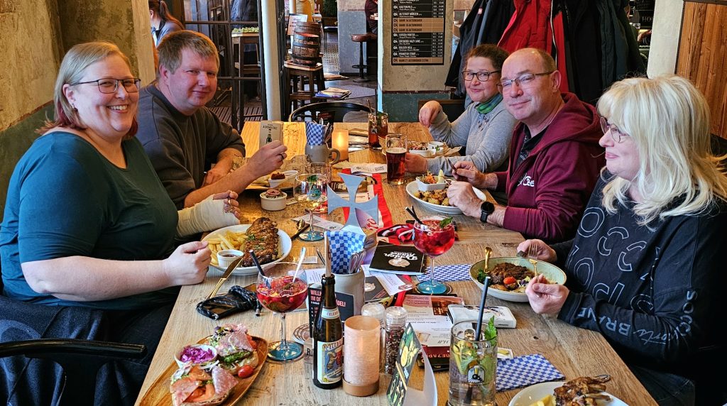 In gemütlicher Runde wurde der Abend nicht nur kulinarisch genossen. Es gab auch ein, zwei organisatorische Dinge und natürlich auch wieder viel Humorvolles unter Freunden. 🙂